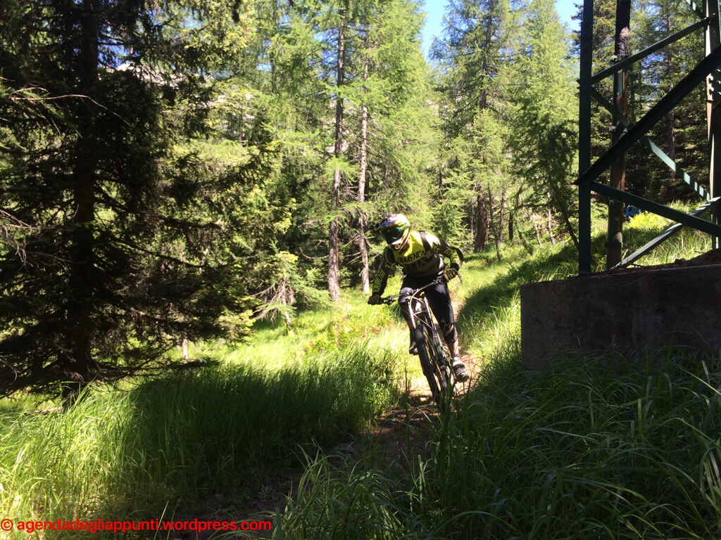 Pista down-hill old school molto fisica, tecnica e poco lavorata, la Valle delle streghe quest’anno presenta alcune varianti rispetto alle passate stagioni (almeno così mi dice Michele, il mio amico che sul posto gestisce un noleggio MTB).