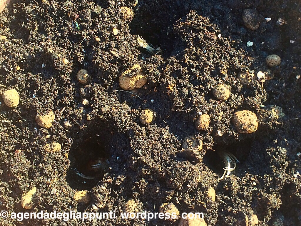 Prima di piantare i bulbi di zafferano mi sono prima “acculturato” un po’ sul web e, visto che non mi è sembrata una cosa troppo complicata, ho preparato il terriccio in un vaso capiente è fatto dei buchi profondi 12 cm circa. Una volta fatta questa operazione, ho interrato i bulbi con l’apice verso l’alto, coperto i buchi con una leggera passata del palmo della mano, bagnato leggermente la terra e messo il vaso in una zona riparata ma decisamente assolata del balcone.