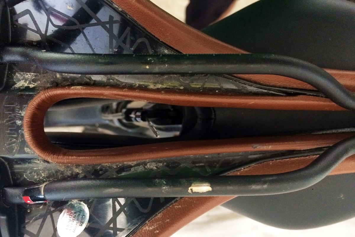 Come potete vedere dalle foto, la sella [pur essendo stata “maltrattata” in abbondanza, nda] non presenta alcun segno di cedimento e le scritte sono rimaste praticamente tali e quali a quando è stata montata.