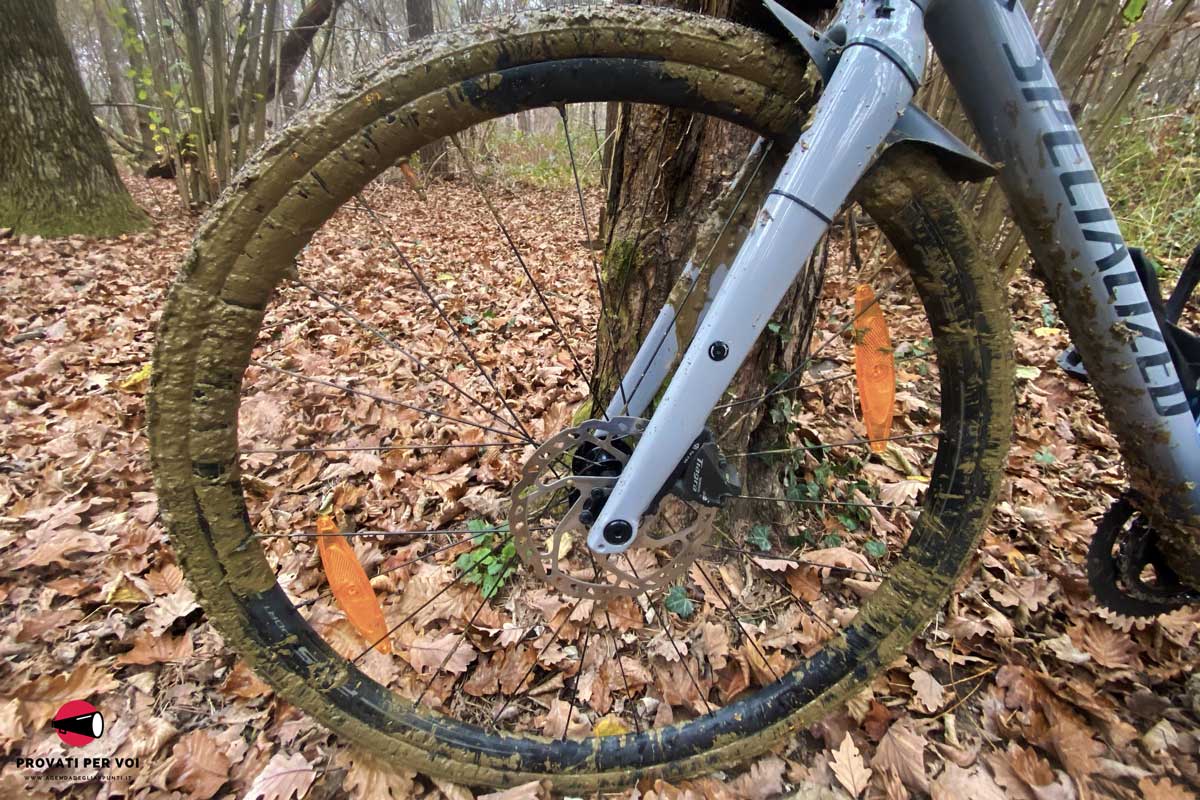 Ottima motricità anche in salita su fondo cedevole, scarsa resistenza al rotolamento e confortevoli tanto sul pavè quanto sulla ghiaia e sull’asfalto, infondono una certa sicurezza anche su fondi umidi/fangosi e ghiaiosi cedevoli anche se su questi ultimi, in curva, non me la sono sentita di spingermi (e spingermi) oltre il loro limite, soprattutto per un discorso di spirito di auto conservazione.
