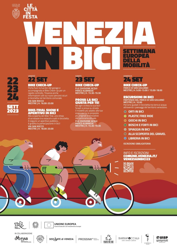 La presentazione del progetto sarà domani domenica 24 settembre nell’ambito di Venezia in Bici, serie di eventi organizzata dal Comune di Venezia nell’ambito della Settimana Europea della Mobilità; la prima esperienza, proposta proprio da Venezia in Bici, sarà la pedalata bici+battello fino all’isola di Sant’Erasmo.